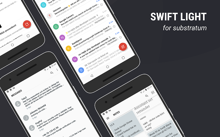Overview: Lovely light theme for many Google and third-party apps, inspired by Android O and Samsung, for the Substratum theme engine. It fully supports Android 7.0 and 7.1 / Google Pixel / OxygenOS 4 / LineageOS / Samsung S8 / OMS